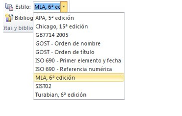 En el grupo citas y bibliografía , haga clic en la flecha situada junto a estilo.